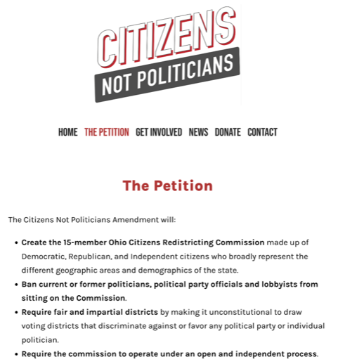 In August, 2023, Ohio voters reserved their century-old right to amend the state constitution by a simple majority vote. This year we have the chance to pass a constitutional amendment called Citizens Not Politicians. It was drafted with bipartisan support including Ohio’s retired Republican Chief Justice Maureen O’Connor. This amendment would prevent elected officials – with their built-in conflict of interest – from being able to draw electoral district maps to preserve their power so that their primary accountability is to large donors, not the majority of ordinary citizens.