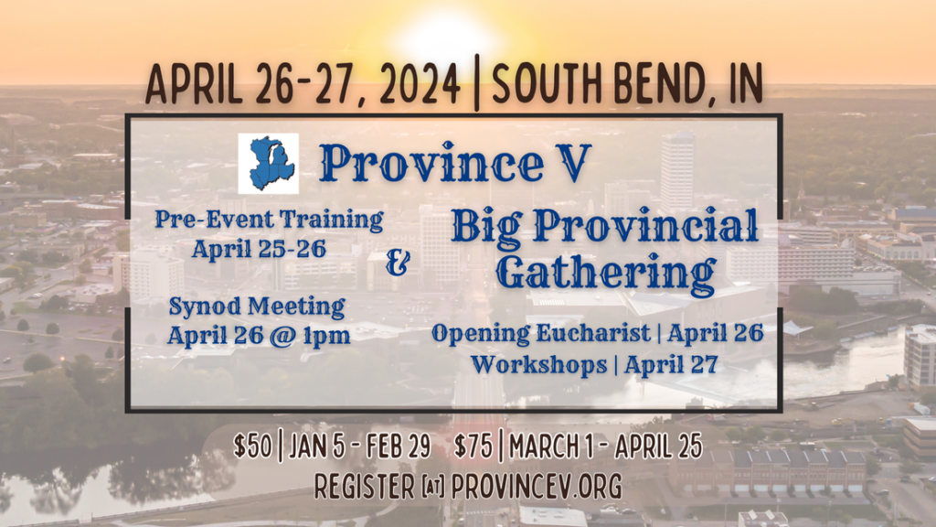 Pre-event trainings are also offered and will run from Thursday afternoon through Friday morning. The Province V Synod will meet on Friday afternoon. The event kicks off with a community Eucharist Friday evening, and workshops run on Saturday.