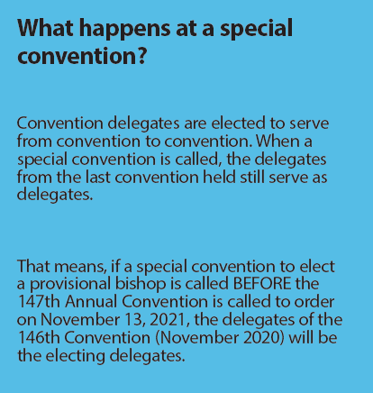 It is quite possible we will need to call for a special diocesan convention to ask the convention to approve our interim bishop as our provisional bishop. What does this mean? A provisional bishop has the same authority as a diocesan bishop but serves for a limited time until the next diocesan bishop is elected. When there is a diocesan or provisional bishop, they are the Ecclesiastical Authority in a diocese. This is different from an assisting bishop, who serves in a diocese at the request of either a diocesan or provisional bishop or, as you have seen more recently, the Standing Committee acting as Ecclesiastical Authority.