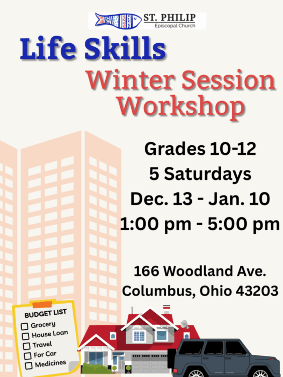 Life Skills Workshop at St. Philip, Columbus. Winter Session - 5 Saturdays, December 13 - January 10. The Life Skills Workshop will focus on introducing youth to the following skills for career and everyday living. Career Aptitude Jobs Financial Literacy – guest speaker Cost of Living Budgeting College and Career Readiness – guest speaker Basic … |