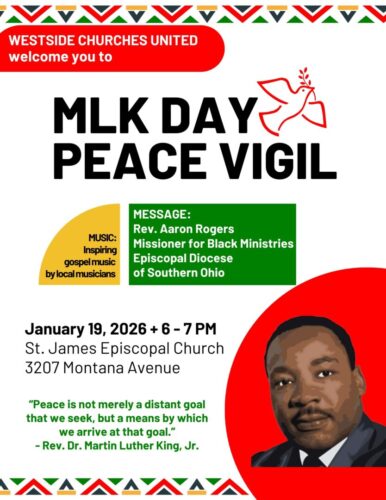 Join Westside Churches United for a Martin Luther King, Jr. Day peace vigil at St. James, Westwood. The Rev. Aaron Rogers, Missioner for Black Ministries, Episcopal Diocese of Southern Ohio, … |
