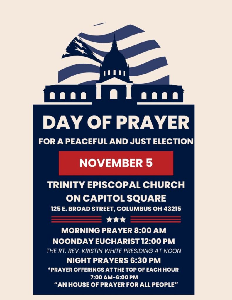Trinity Episcopal Church on Capitol Square will be open from 7 am to 7 pm on November 5, and offering an Election Day of Prayer for anyone in the Columbus area.