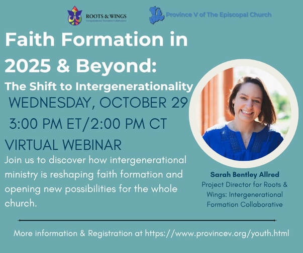 In this online gathering sponsored by Province V of the Episcopal Church, Sarah Bentley Allred will share current research and trends from across the church, including how the intergenerational movement is gaining momentum. While there is no “silver bullet” for this new era of church ministry, intergenerationality offers a wealth of possibilities for the formation of all members of the body of Christ.