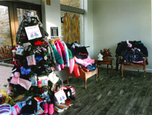 Trinity members also have responded to specific requests for household needs (e.g. grandparents who suddenly find themselves caring for grandchildren who need beds, linens, clothes, etc.). For many years, the parish has collected things for the children on the annual Christmas Giving Tree, such as warm coats, hats/gloves/scarves, undies, socks, shirts, pants, boots, books … and anything else we can think of. For the third year, the congregation delivered 47 hand-tied fleece blankets to be distributed to students in need.