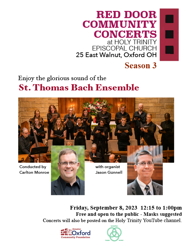 Holy Trinity Oxford 25 E Walnut St, Oxford, OH, USRed Door Community Concert: Pianist Bruce Murray Holy Trinity, Oxford Friday, Feb. 17, 12:15 p.m. Pianist Bruce Murray is a Steinway Artist and Professor of Music at Miami University. He is well known in the Oxford Community for his numerous free, public concerts at the Oxford Community Arts Center. He is is an active recitalist, known especially for …
