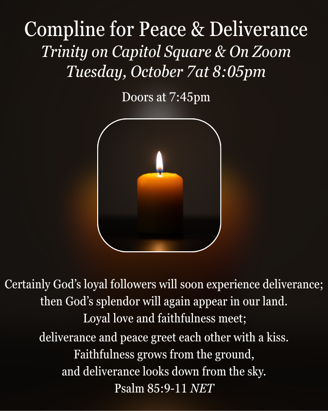 O God, you have bound us together in a common life. Help us, in the midst of our struggles for justice and truth, to confront one another without hatred or bitterness, and to work together with mutual forbearance and respect; through Jesus Christ our Lord. Amen. (BCP, 824). Trinity Episcopal Church on Capitol Square will …