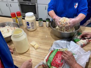During the pandemic the ministry had to switch from a plated meal to carryout boxes, which kept people fed but resulted in what Nelson called a loss of “the community that was so important to its ministerial identity.” But last Sunday marked a return to in-person service, and, according to Nelson, the congregation served 30 pot roast dinners either at the church or to-go, and provided another 60 meals for residents of the housing unit next door.