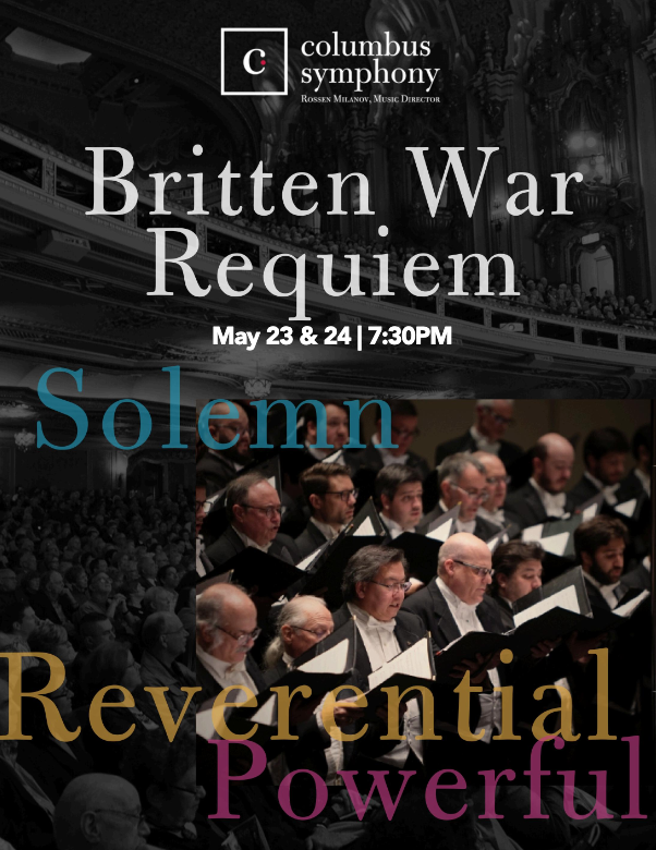 The 8th Episcopal Night at the Symphony - Friday evening, May 23, 2024 The Columbus Symphony Orchestra and Chorus Benjamin Britten WAR REQUIEM Ohio Theatre – 39 E. State Street, Columbus, OH 43215 5:30pm – Reception, bar & "heavy" hors d'oeuvres – 4th floor 7:30pm - Performance – Seats in Prime Orchestra $70 per person …